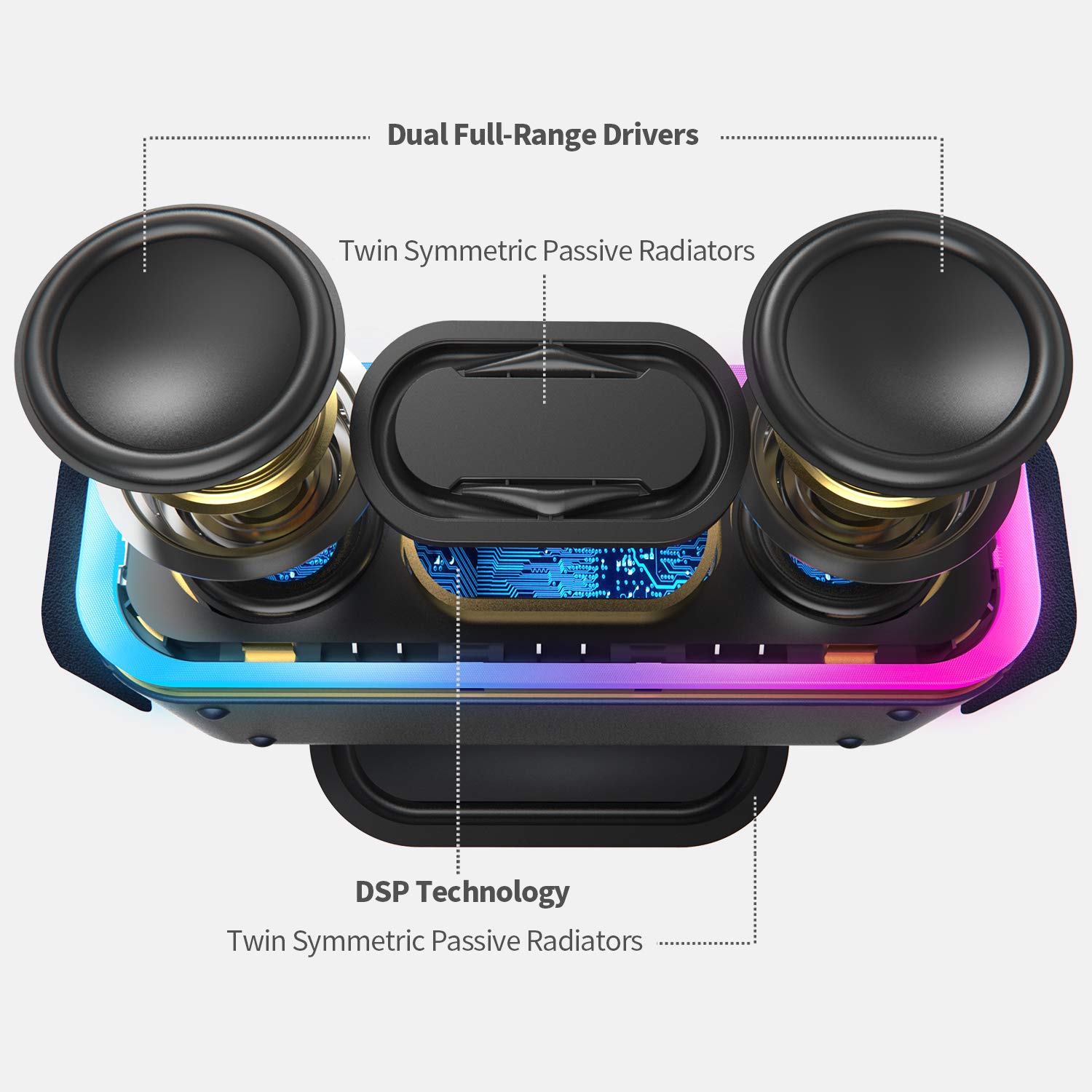 | Feature | Stereo Paring & Booming Bass & Mixed Colors Lights |
